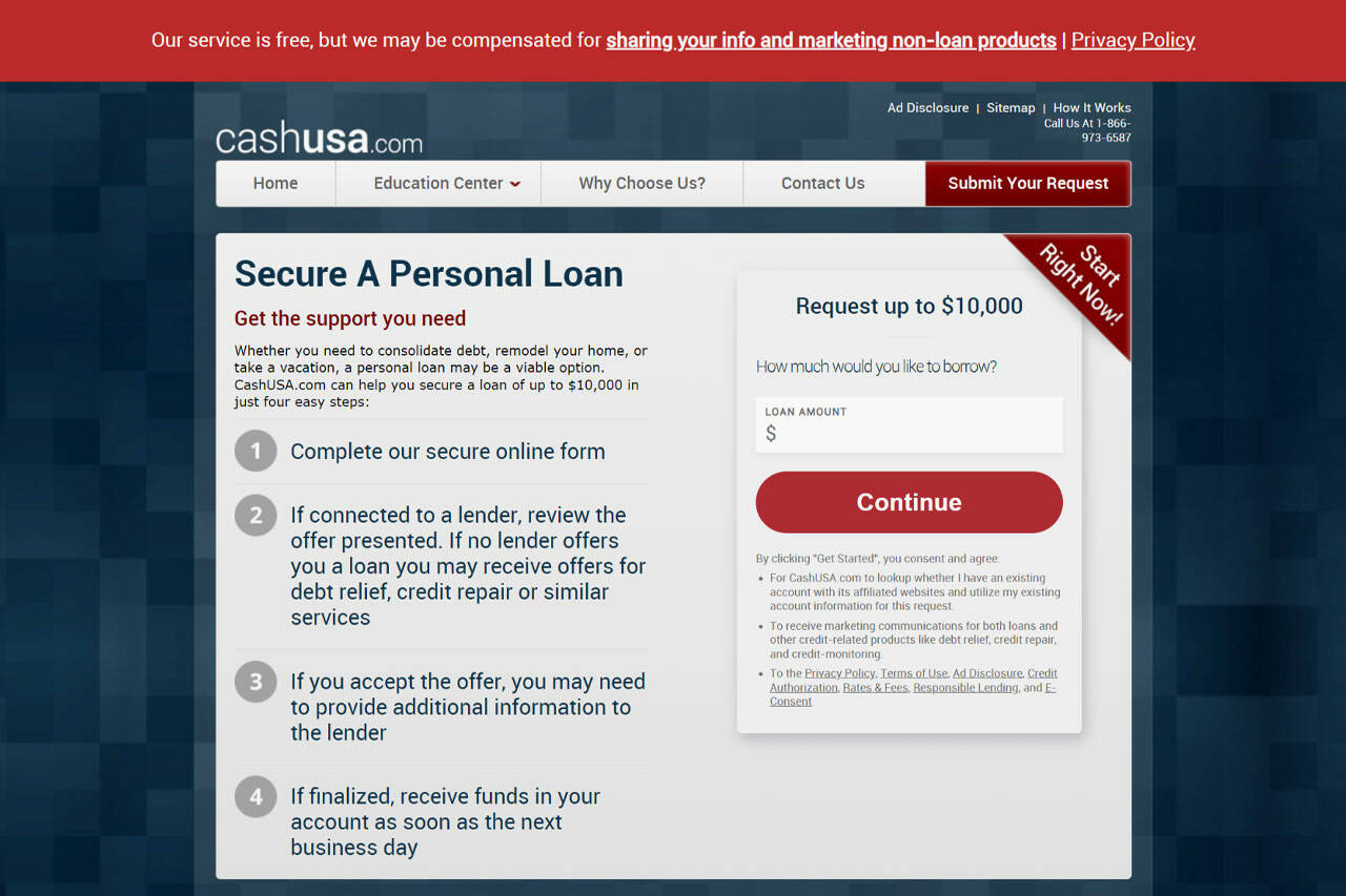 CashUSA utilizes its extensive network of lenders and other third-party networks to review applications and connect the right lender to borrowers. A 100% free service with no shortage of business advertising options for cash loans, going with CashUSA naturally implies diversity in offers. This service’s application process is swift since individuals are only asked the basic requirements.