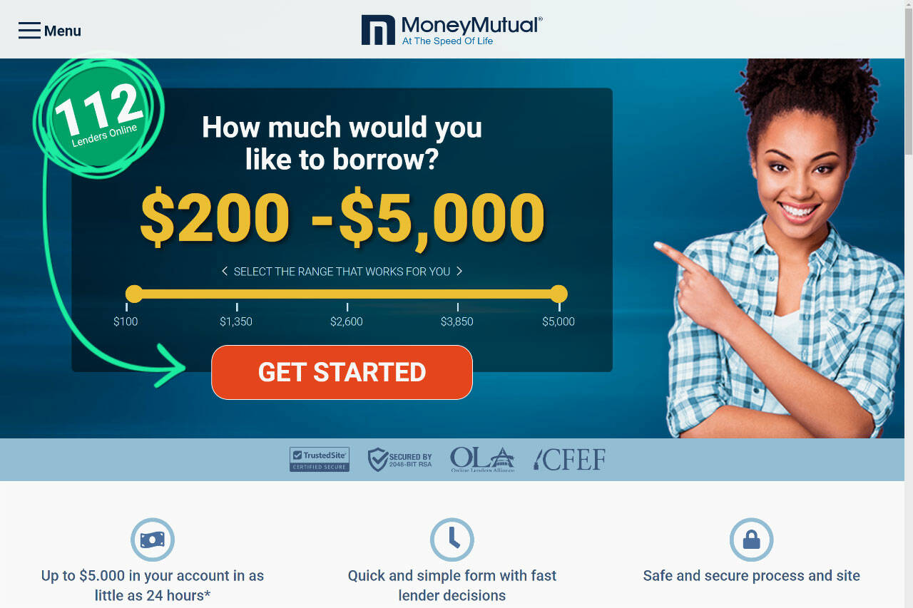 MoneyMutual is a free resource on our list to provide potential borrowers the chance to link with potential lenders. Like every other team, this team does not get involved in the negotiation processes. Yet, they believe that creating such a platform can help 4 in 10 Americans who need emergency assistance (i.e., unexpected bills, medical bills, groceries, gas and other essentials, car repairs, and special occasions). We feel individuals should use MoneyMutual to their full advantage as their resources are informative and provide a clear perspective on what people will be signing up for. The process is three-fold; application, lender review and offer, and finally, accessing the funds.