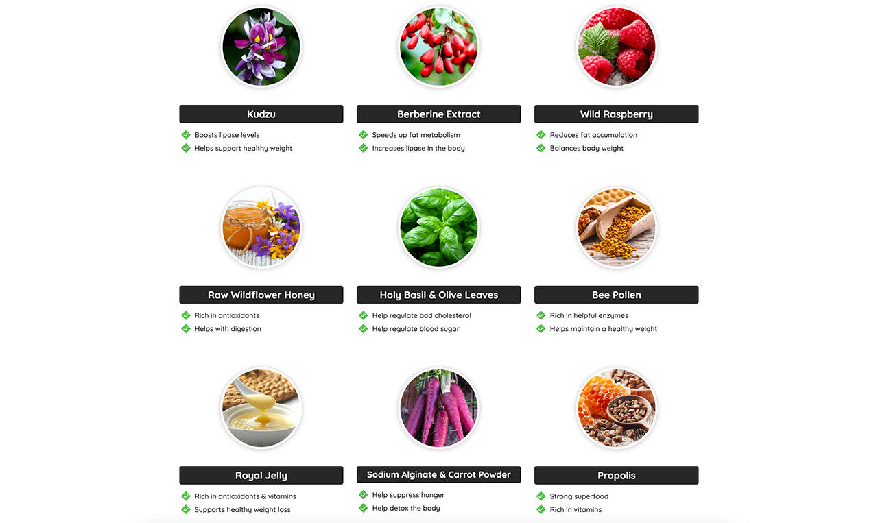 HoneyBurn contains antioxidant-rich ingredients that activate your metabolic switch, promoting healthy weight loss. The ingredients are 100% plant-based and tested for purity and potency. The active ingredients are as follows: