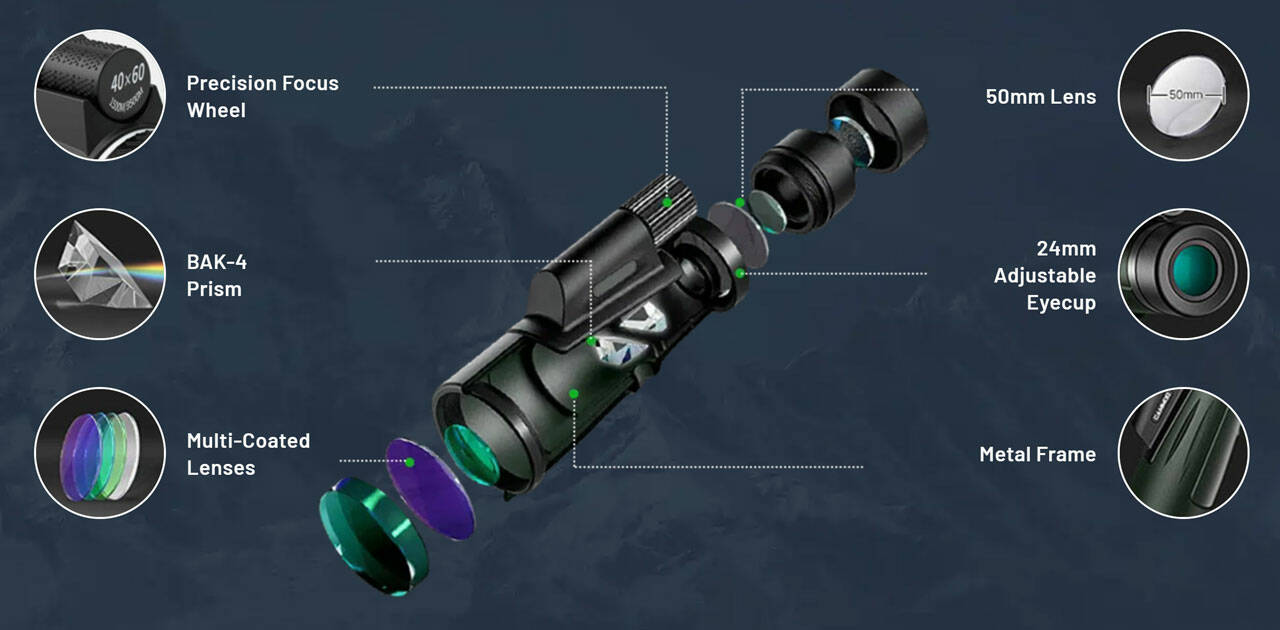 Horizon Scopes is a high-powered monocular BAK4 prism that enhances your viewing experience. It allows you to observe images with high clarity and detail. The device is ideal for professional photographers and any photography enthusiasts.