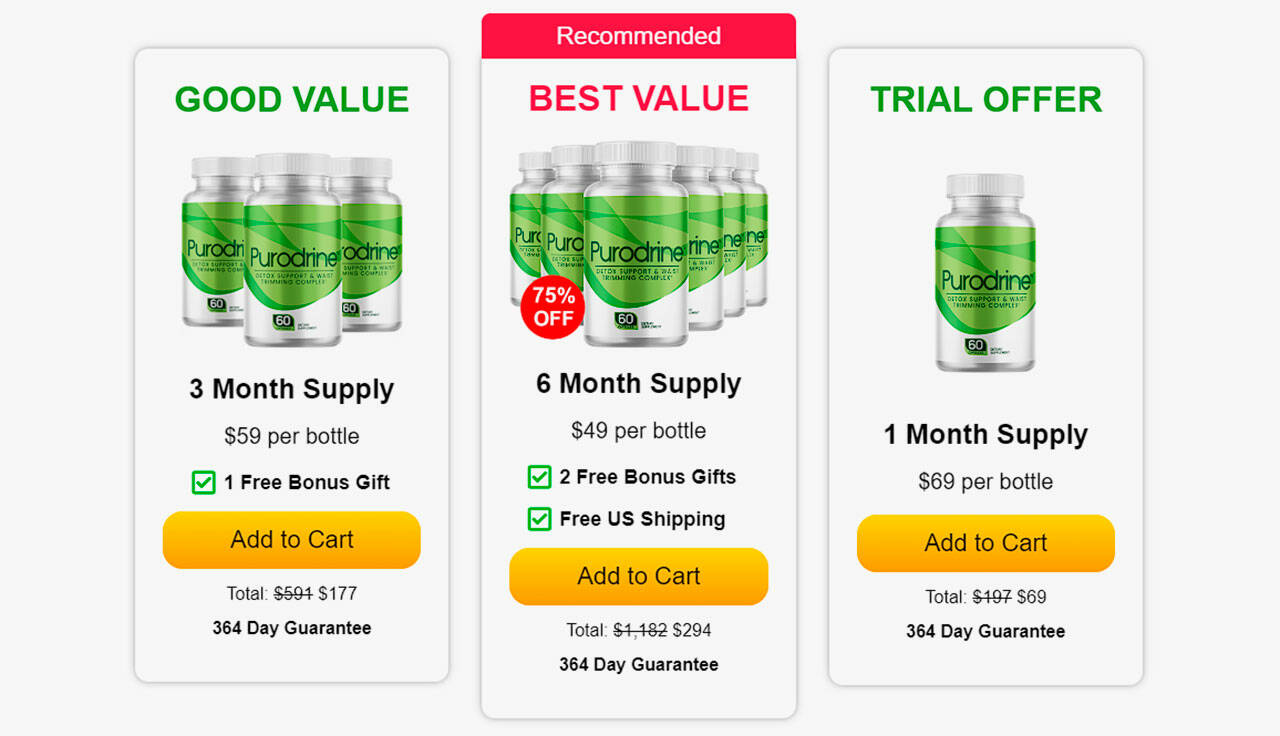 Purodrine is only sold on the official website. The price is reasonable compared to other fat loss supplements in the market. Here are the Purodrine prices: