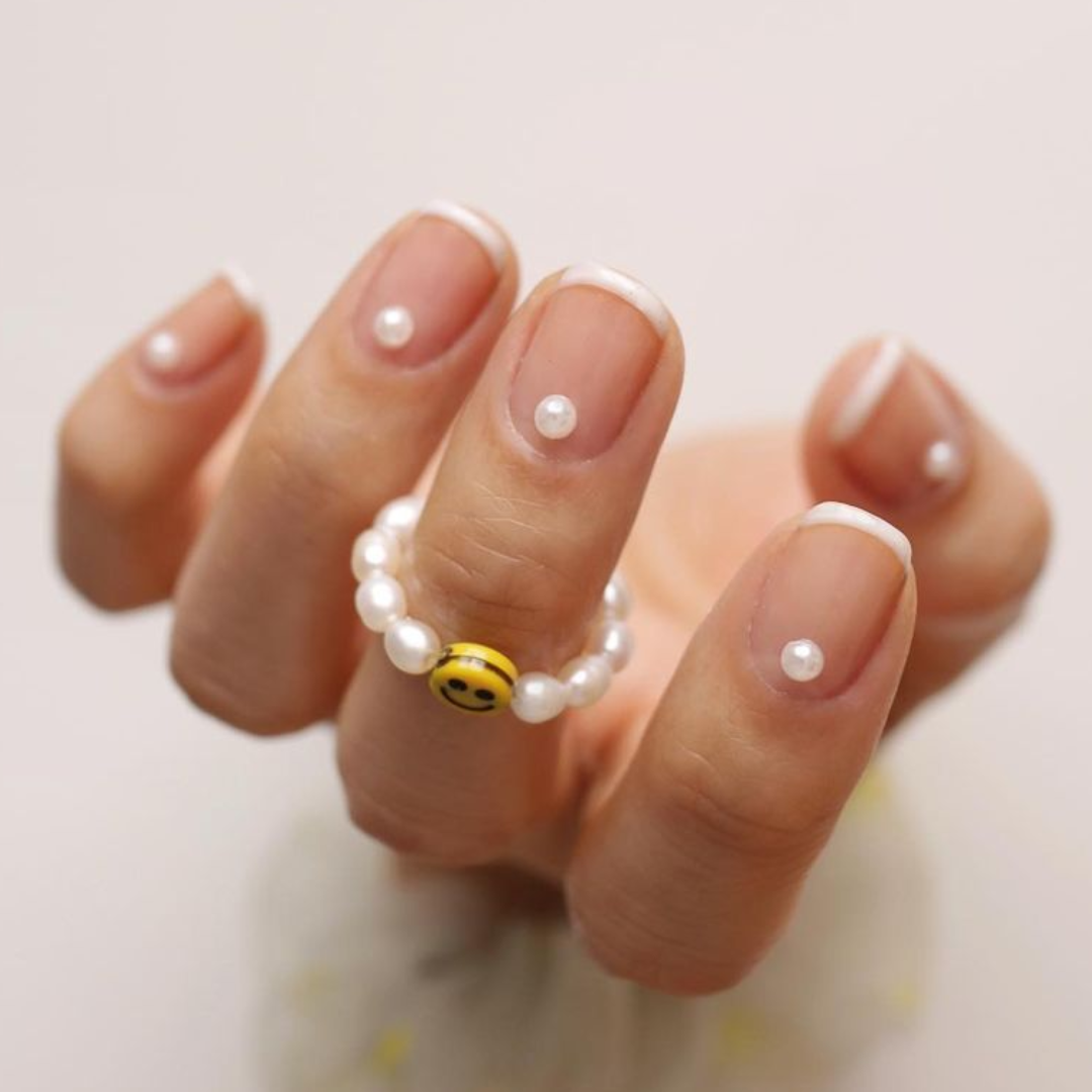 If you’re determined to take your classic French manicure up a level (without too much extra effort/artistry), try placing a single pearl per nail with a little nail glue.