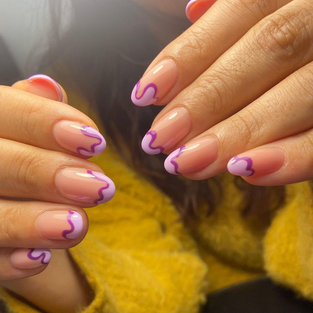 You can play with shape, too; we’re giant fans of this ‘squiggly’ style of French tip. It also showcases two shades of the same colour to dial up definition.