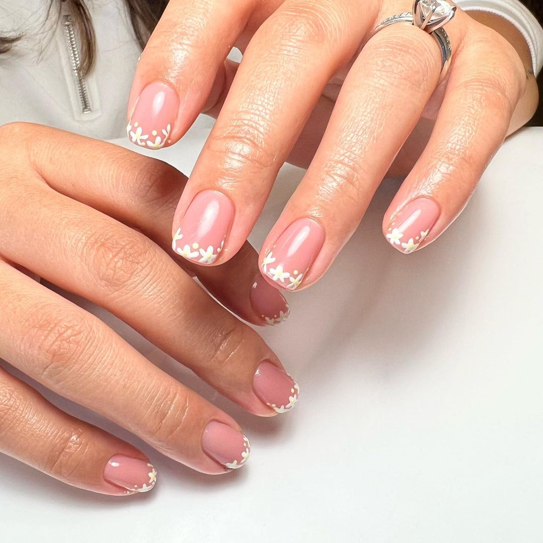 Florals for French manicures are actually genuinely groundbreaking if you ask us. Flowers drawn in a French tip shape are every bit as sophisticated, just extra pretty.