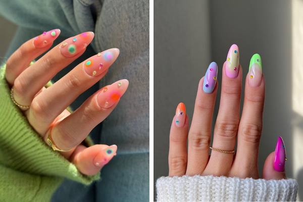 Lean into the spring pastel theme with a mix-and-match aura nail design, then add some colourful diamantes and watch them glisten. And don’t be fooled into thinking that bright, bejeweled nails can only be enjoyed by teens. As Taylor Swift once said, you can still make the whole place shimmer…