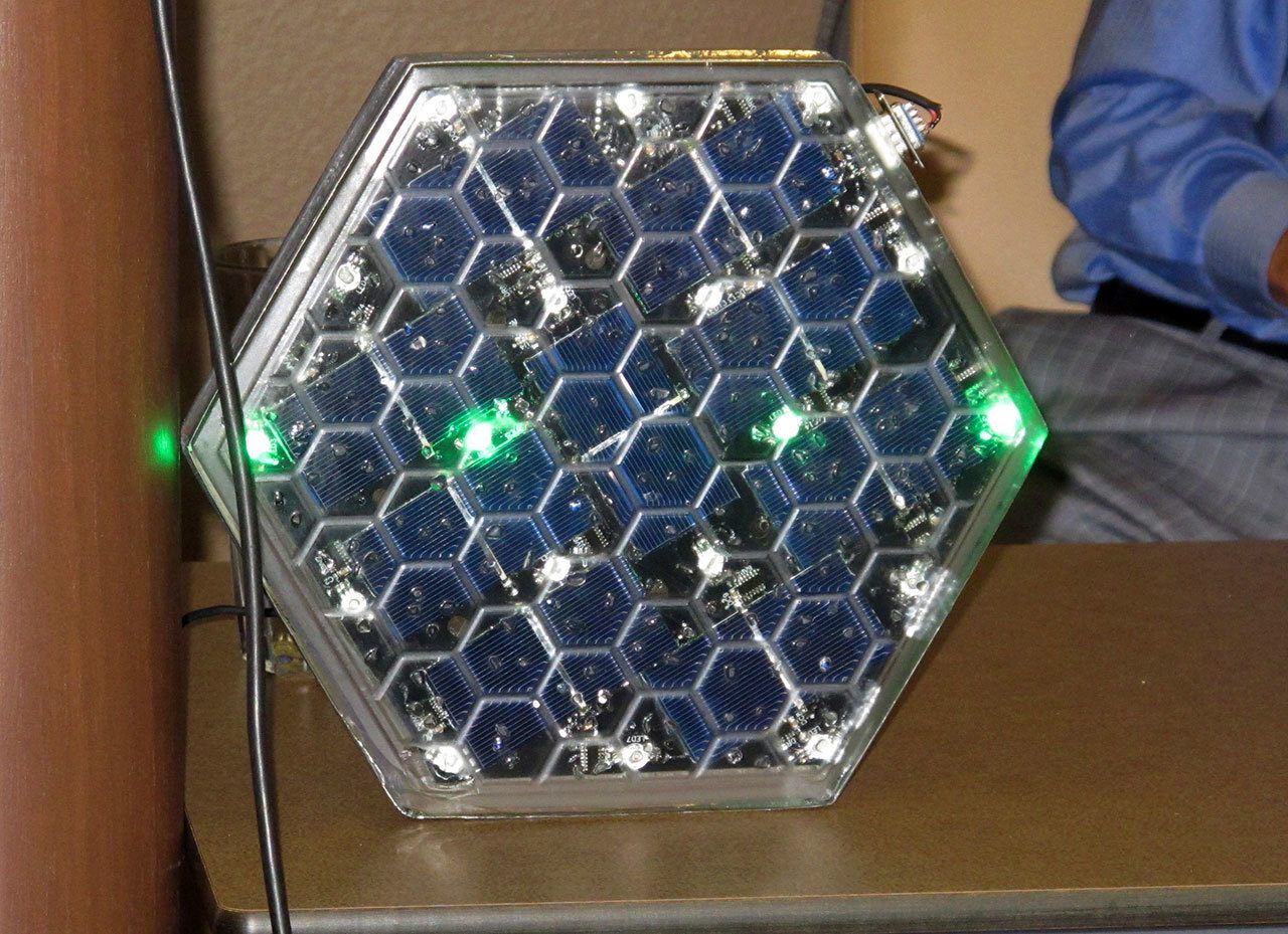 It’s 150 square feet of hexagon-shaped solar panels that people can walk and bicycle on.
