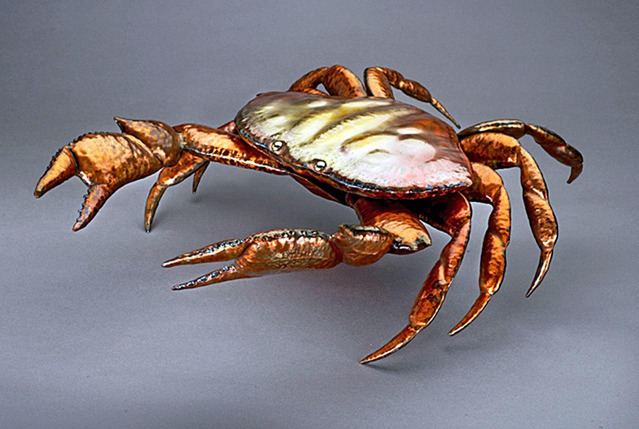 Mundy’s 20-foot-long copper and stainless-steel sculptural sign featuring a giant Pacific octopus, Dungeness crab and Elwha Chinooks, lives above the entrance to the Feiro Marine Life Center on the Port Angeles City Pier, while inside stands a floor-to-ceiling story pole and bench created by Mundy called “Kindred Spirits.”