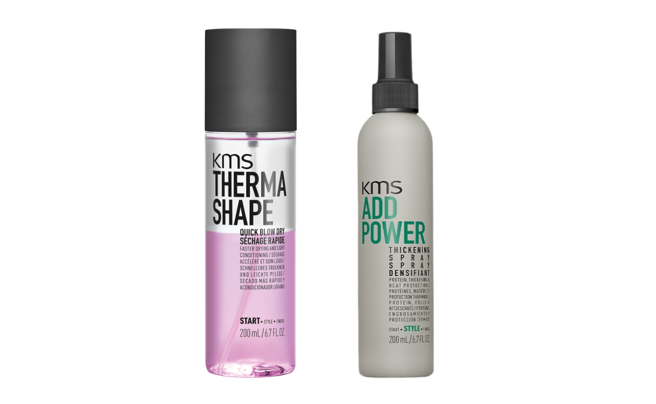 Then he followed up with the KMS Hair Thermashape Quick Blow Dry Spray ($24.95 from Oz Hair & Beauty) and KMS Hair Addpower Thickening Spray ($25.95 from Oz Hair & Beauty), distributing the products from the roots of her hair down to the ends.