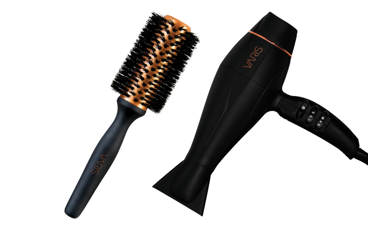 For an instant lift, Gareth blowdried Aimee’s hair upside down using the Varis SB2 Dryer ($245 from The Base Hair Lab). Then he used the dryer and the Varis Large Boar Brush ($45 from The Base Hair Lab) to add volume through the crown of her hair.