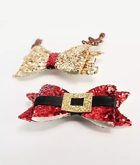 ASOS Accessorize 2 pack glitter bow christmas hair clips in red and gold