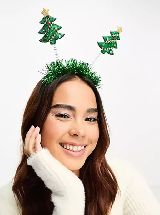 Now, this isn’t the accessory you wear when you’re trying to look très chic. But it sure will get a good giggle round the Christmas table. Just whack on this bobbling glittering green Christmas tree headband for the most festive-fun look.