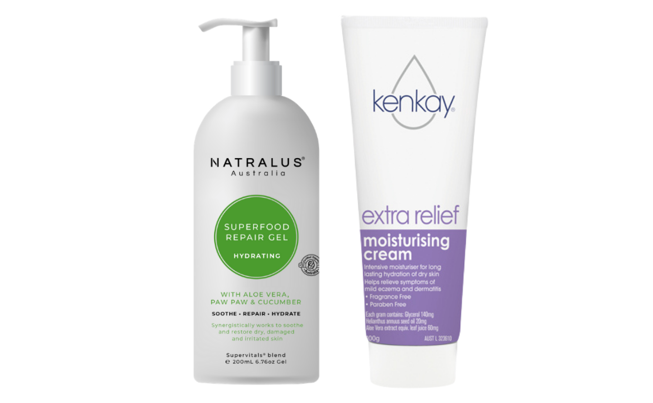 bh recommends: Natralus Superfood Repair Gel ($19.20 for 200ml at natralus.com.au) and Kenkay® Extra Relief Moisturising Cream ($7.49 for 100ml at pharmacydirect.com.au)