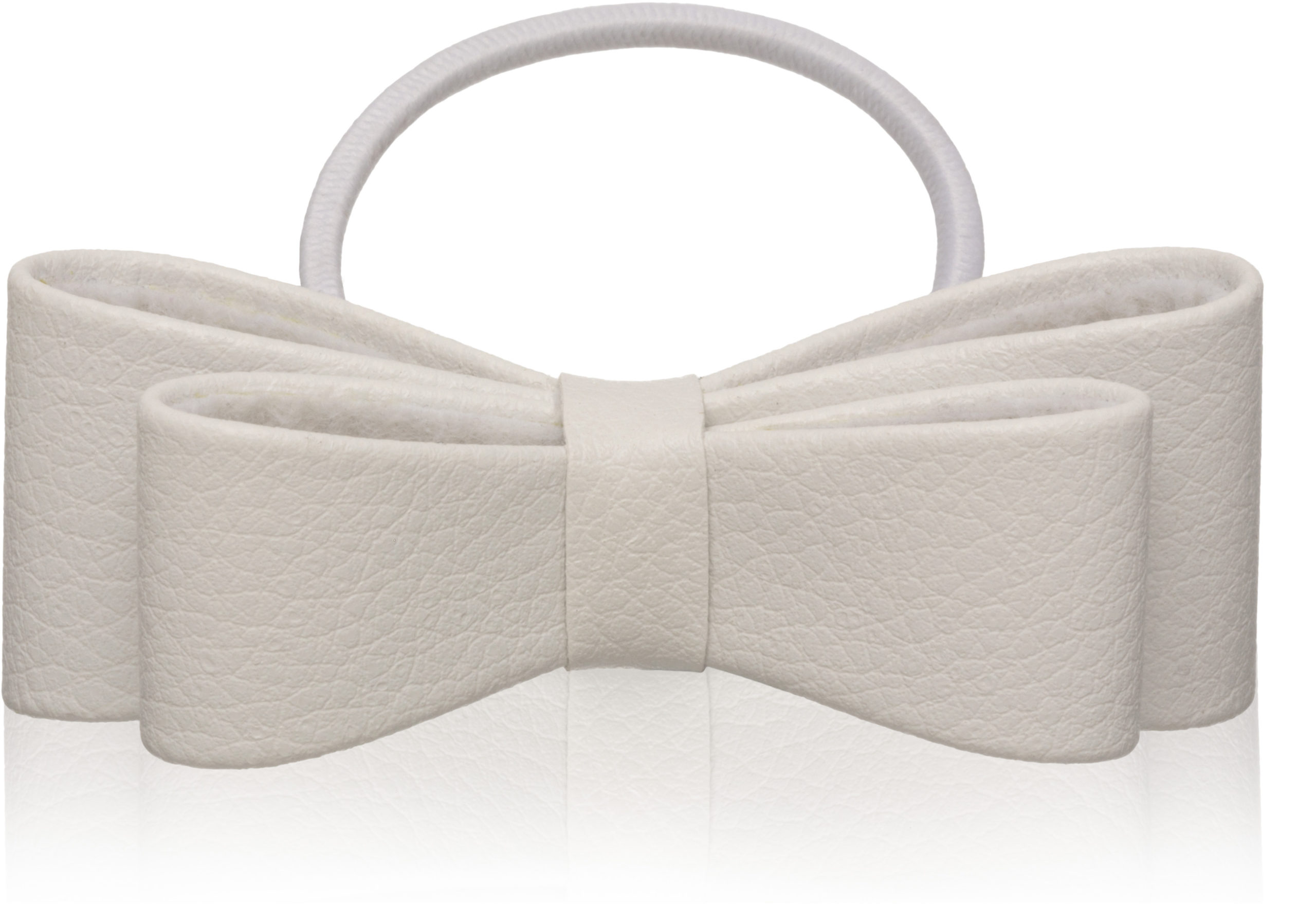 Lady Jayne Leather Bow Elastic is a hair elastic featuring a white leather bow. It is part of the limited-edition Metallic Blush collection, inspired by metallic rose gold hues and blush pastel tones.