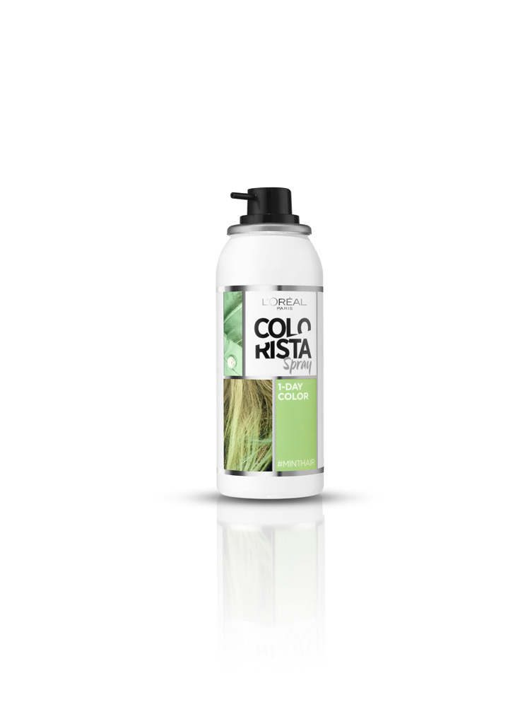L’Oréal Paris Colorista 1-Day Spray is a temporary hair colour spray that disappears in one wash. The white micro-powder formula creates a blank canvas on hair so pigments on top become pure and visible, no matter how light or dark the hair. It is available in five shades: Vibrant Hot Pink (for brunettes), Pastel Blue (for blonde or pre-lightened hair), Pastel Mint (for blonde or pre-lightened hair), Pastel Pink (for blonde or pre-lightened hair) and Pastel Lavender (for blonde or pre-lightened hair).