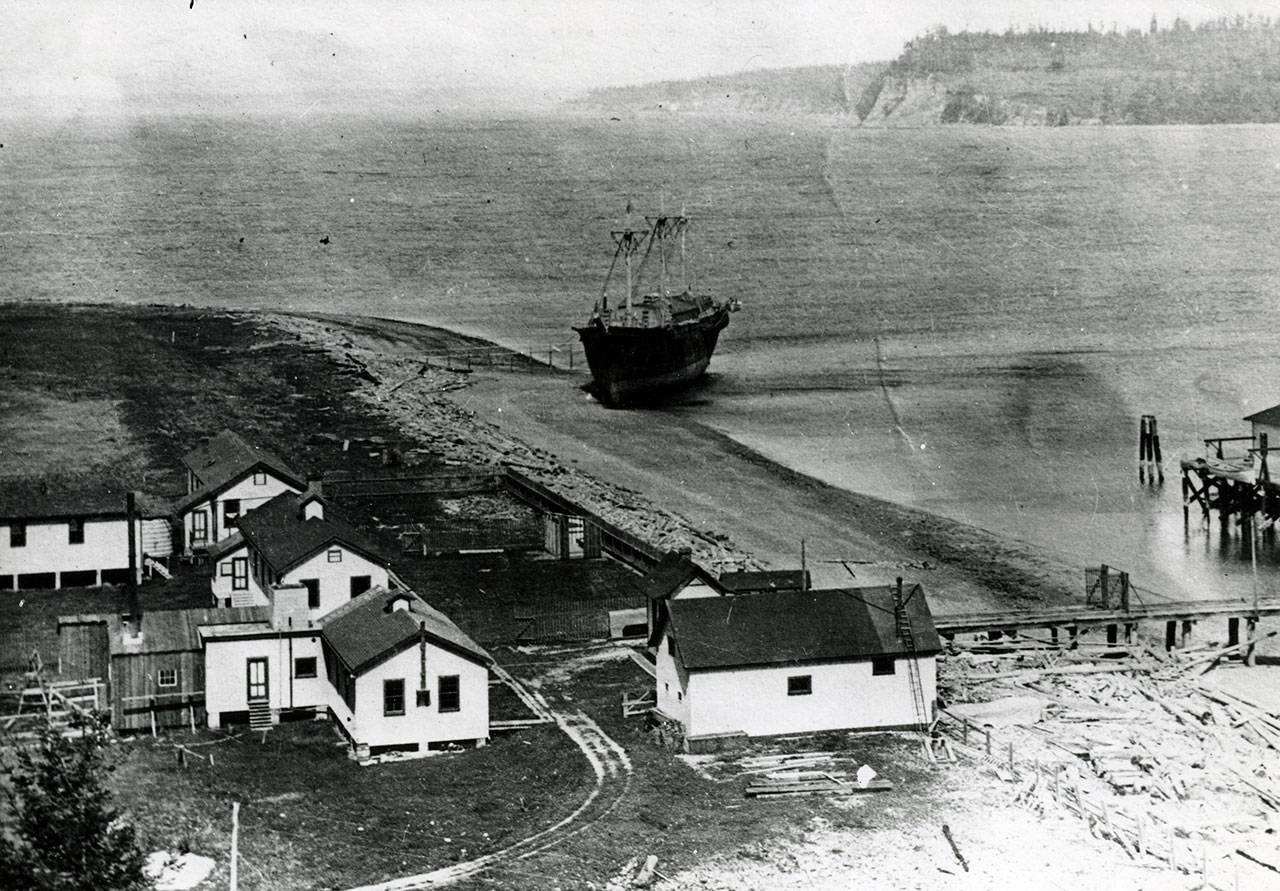 In the spring of 1893 the wooden hulk of a 195-foot Civil War Navy ship, the Iroquois, that had “outlived her usefulness” was towed from San Francisco and moored in Port Townsend harbor to serve as a receiving ship.