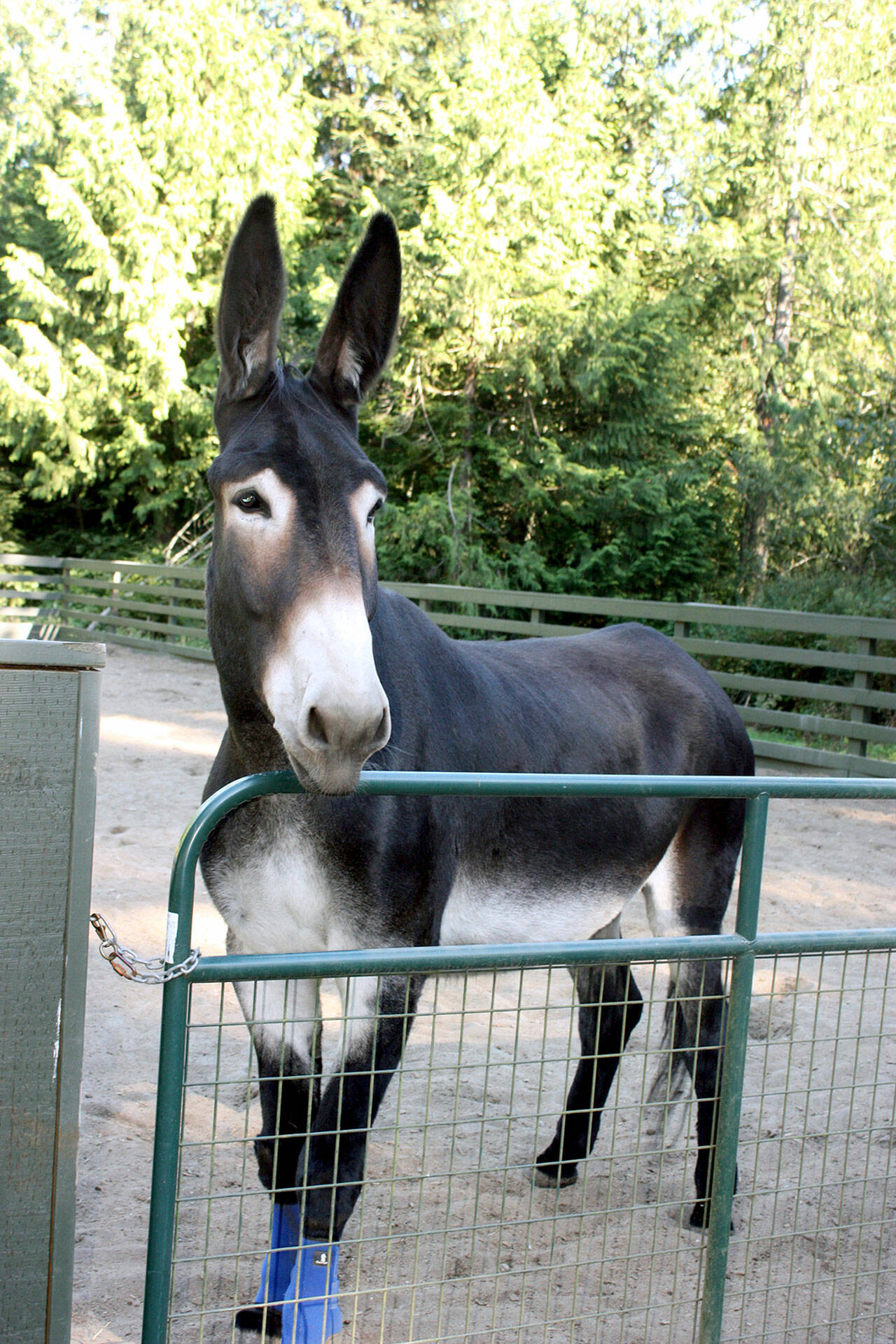 Donkeys are stoic, meaning donkeys will hide pain and not show pain until in many cases it is too late. Donkeys metabolize drugs different from a horse be sure and get a vet who has experience with donkeys. Melody uses Sound Equine’s Dr. Smith in Poulsbo.