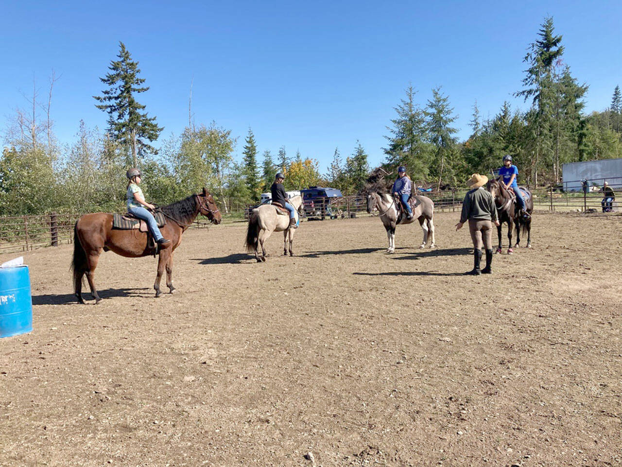 Arianne Raser, an instructor from Port Townsend, worked in the arena with the kids and their horses to help them learn safe trail riding skills, such as proper following distance, being able to turn on the haunch and forehand, and riding with loose, relaxed reins.