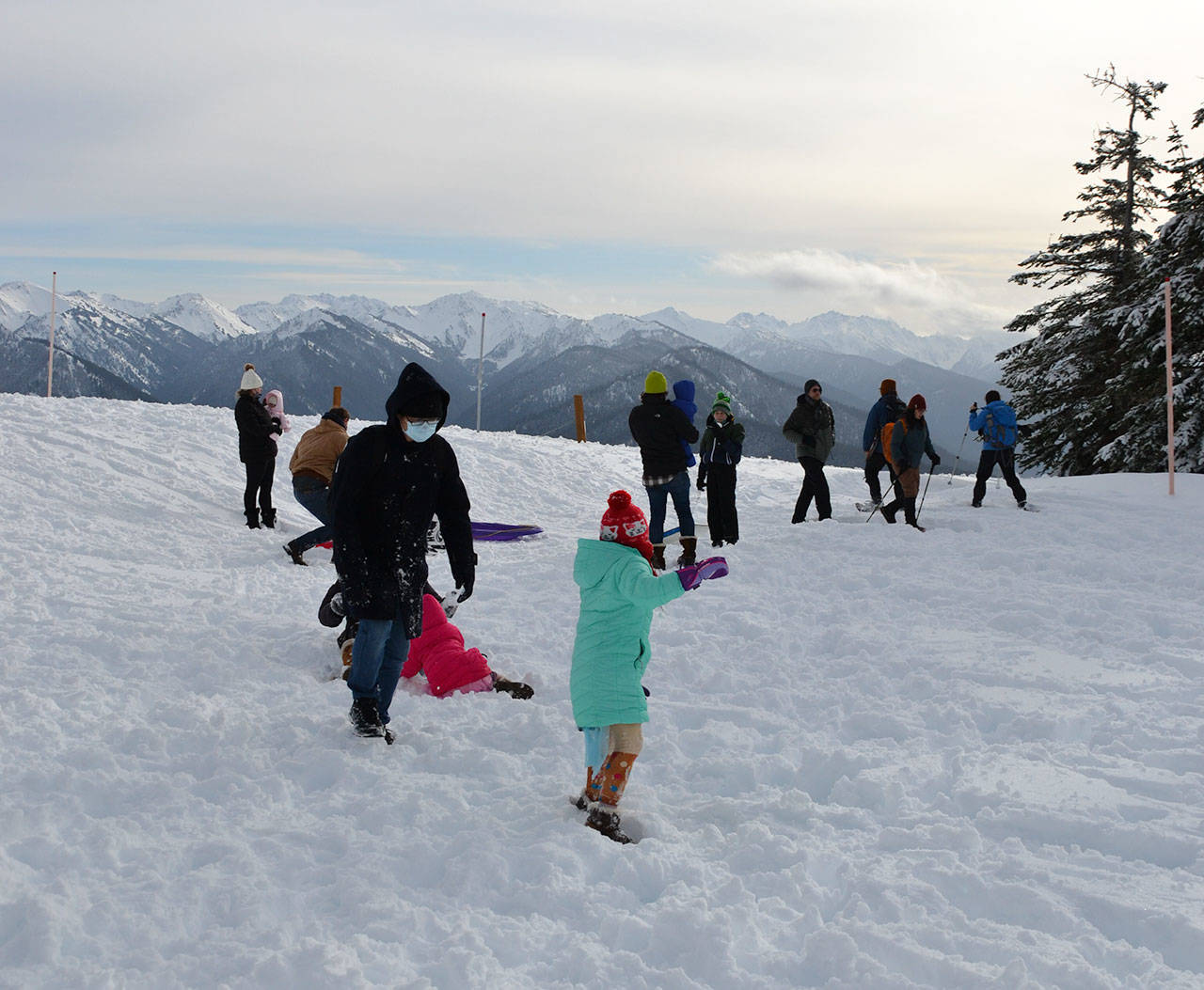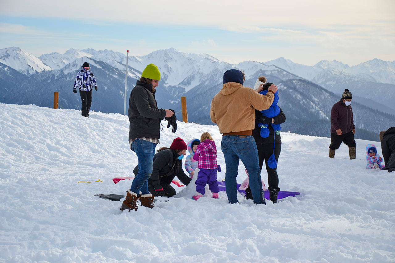With the sun shining and the 17-mile road up to the Hurricane Ridge parking lot clear, families and friends took advantage of the first day of the season on Friday to partake in various winter outdoor activities, including snowboarding, snowshoeing and snowball fights.