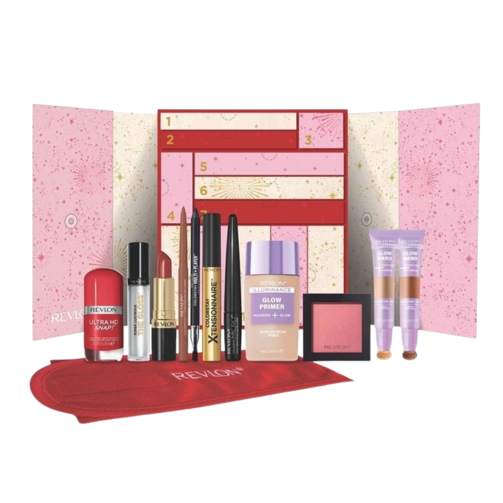 What’s inside: Includes full-sized Illuminance complexion products, powder blush, mascara, liquid and pencil liner, lipstick, lip gloss, nail polish, and a bespoke Revlon headband.