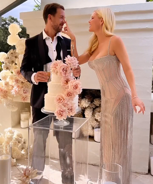 And of course, it wouldn’t be a Sophie Monk wedding without a dress change, would it? Celebrity fashion stylist Natalia De Martin-Crevani helped the bride step into a second gown, featuring chain details and a 1920s flapper hem to cut the cake.