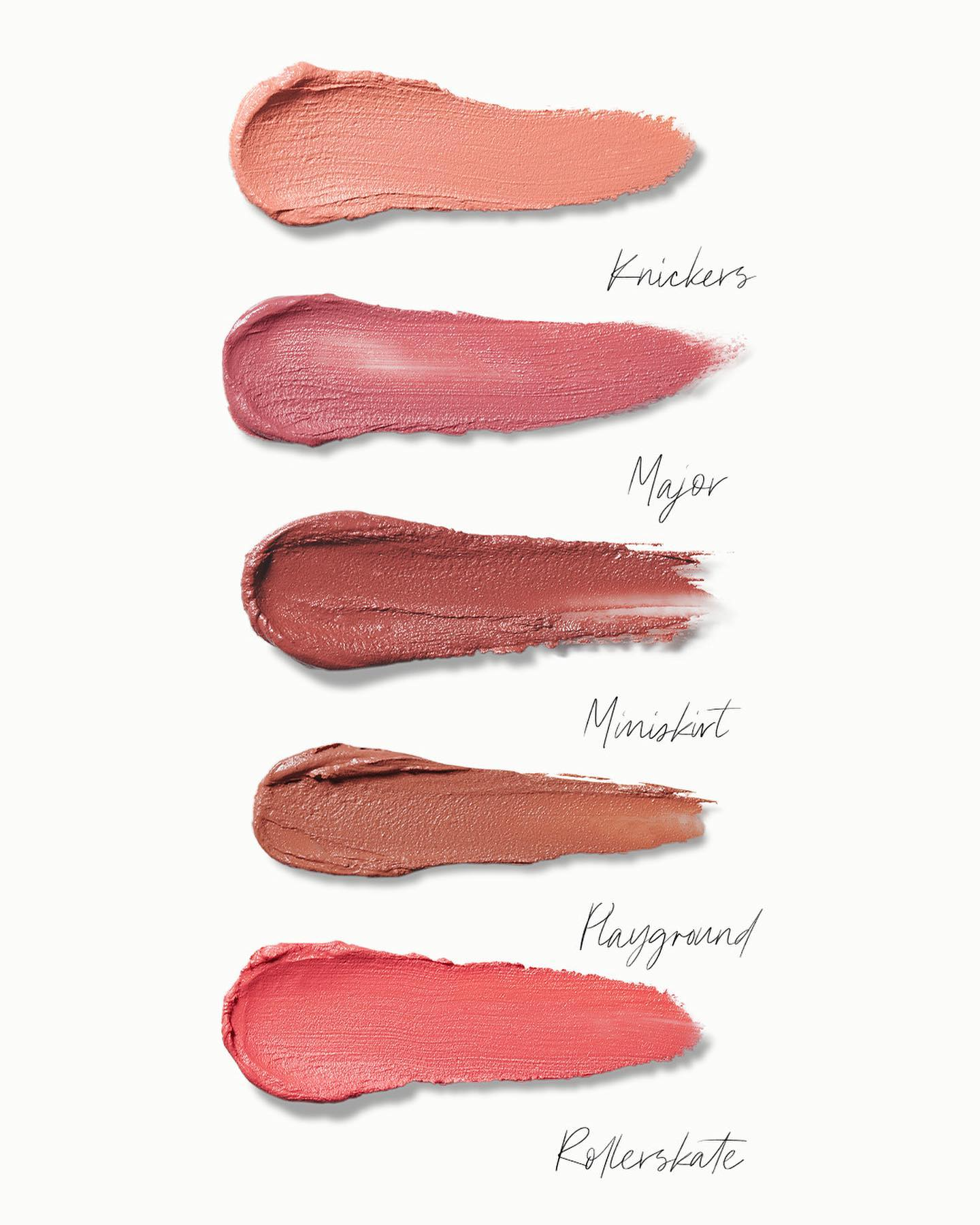 Playground: Mid-tone terracotta nude. Inspired by a family member, VB has thrown back to her childhood as she recalls her mum using her lipstick as a blush when they’d go to the playground.
