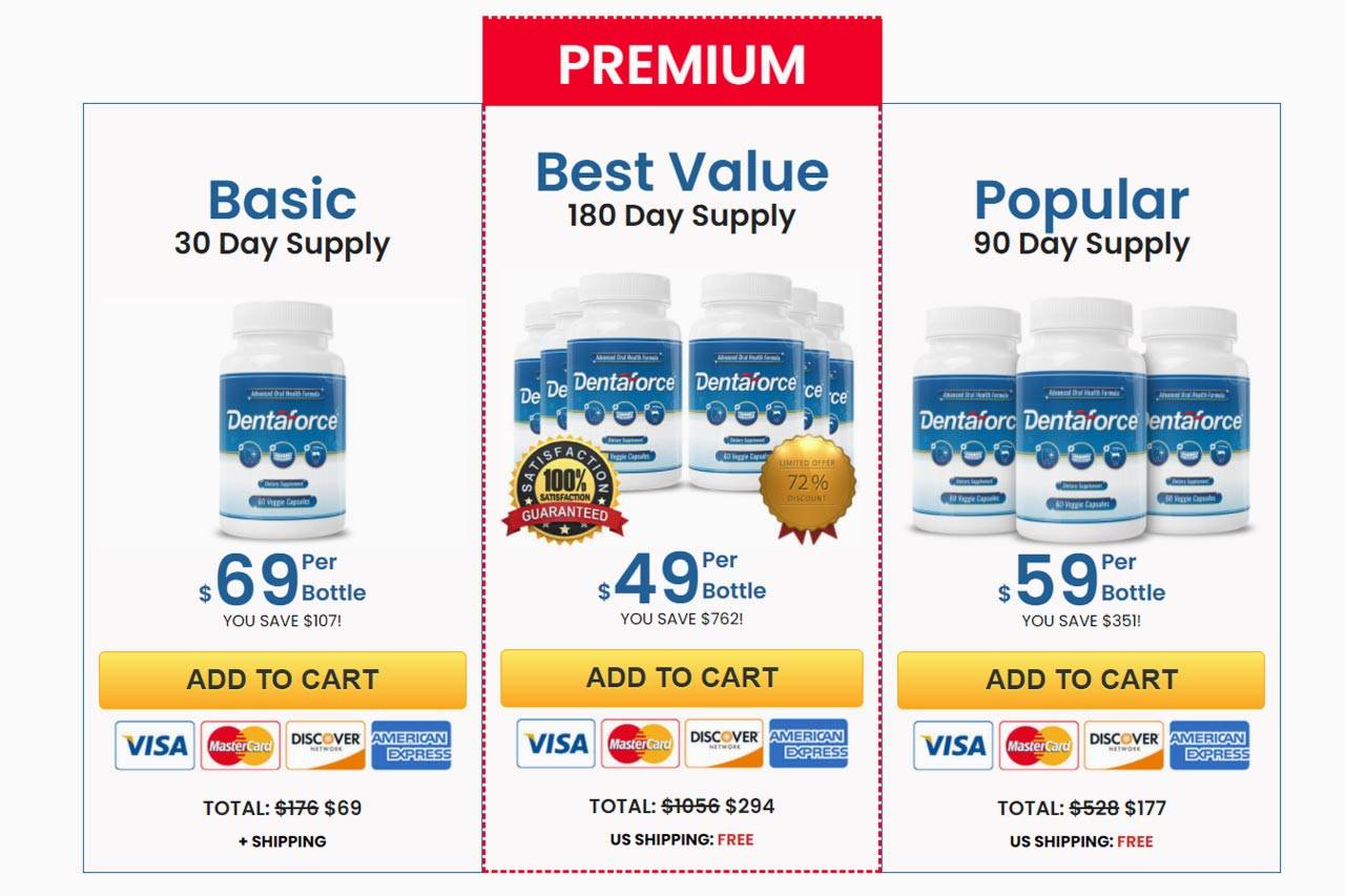 DentaForce bottles consist of 60 capsules enough to last a month each. That said, bulk purchases are often rewarded with lowered prices per unit, as seen below: