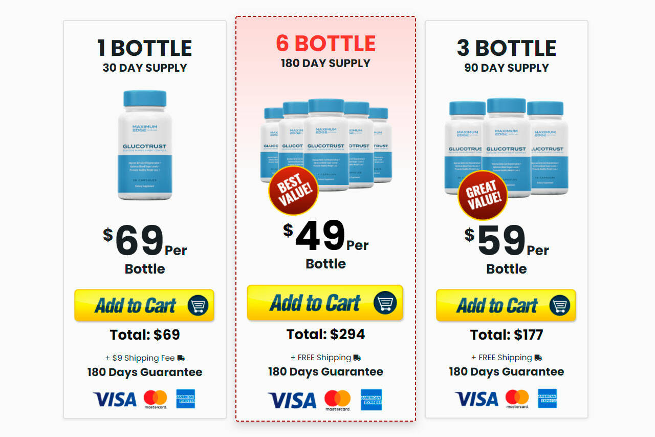 • 6 x GlucoTrust = $ 49 per bottle + free shipping.