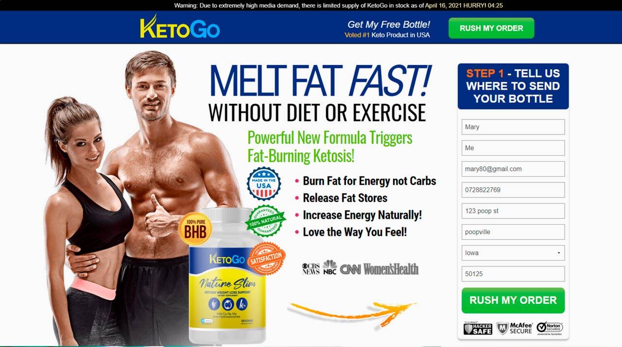 KetoGo is a diet pill that claims to melt fat quickly with no diet or exercise.