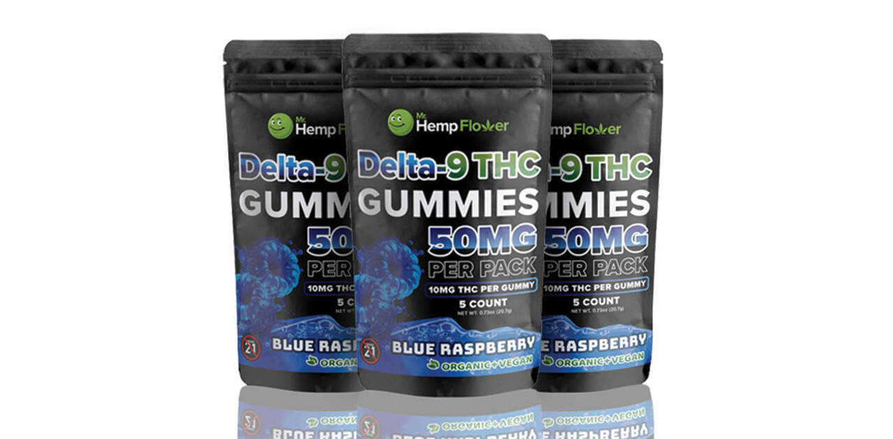 Gummies from brands like Mr. Hemp Flower are made with all-natural ingredients and sold in packages with 5 gummies each for a total of 50 mg of delta-9 THC.