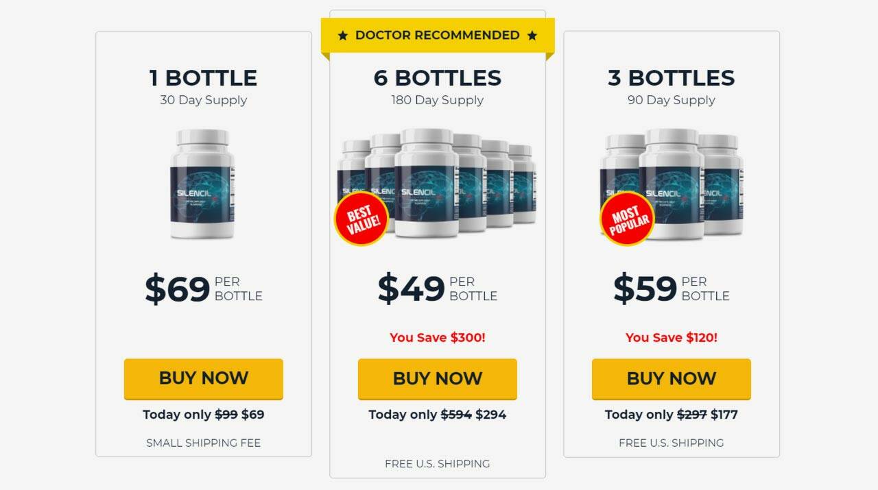 Silencil is available as either a single bottle or part of a 3 or 6-bottle package. The bundle package offers significant savings with free shipping. Furthermore, you can get bulk discounts when you choose the 6-bottle option. Here are the Silencil prices