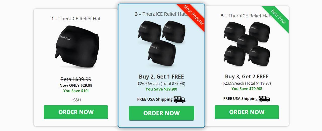 The TheraIce RX can be purchased directly from the official website, where they offer multiple purchase options. This headache relief hat runs a promotion where users can buy 2 devices and get an extra TheraICE Rx for free. Here is the pricing information: