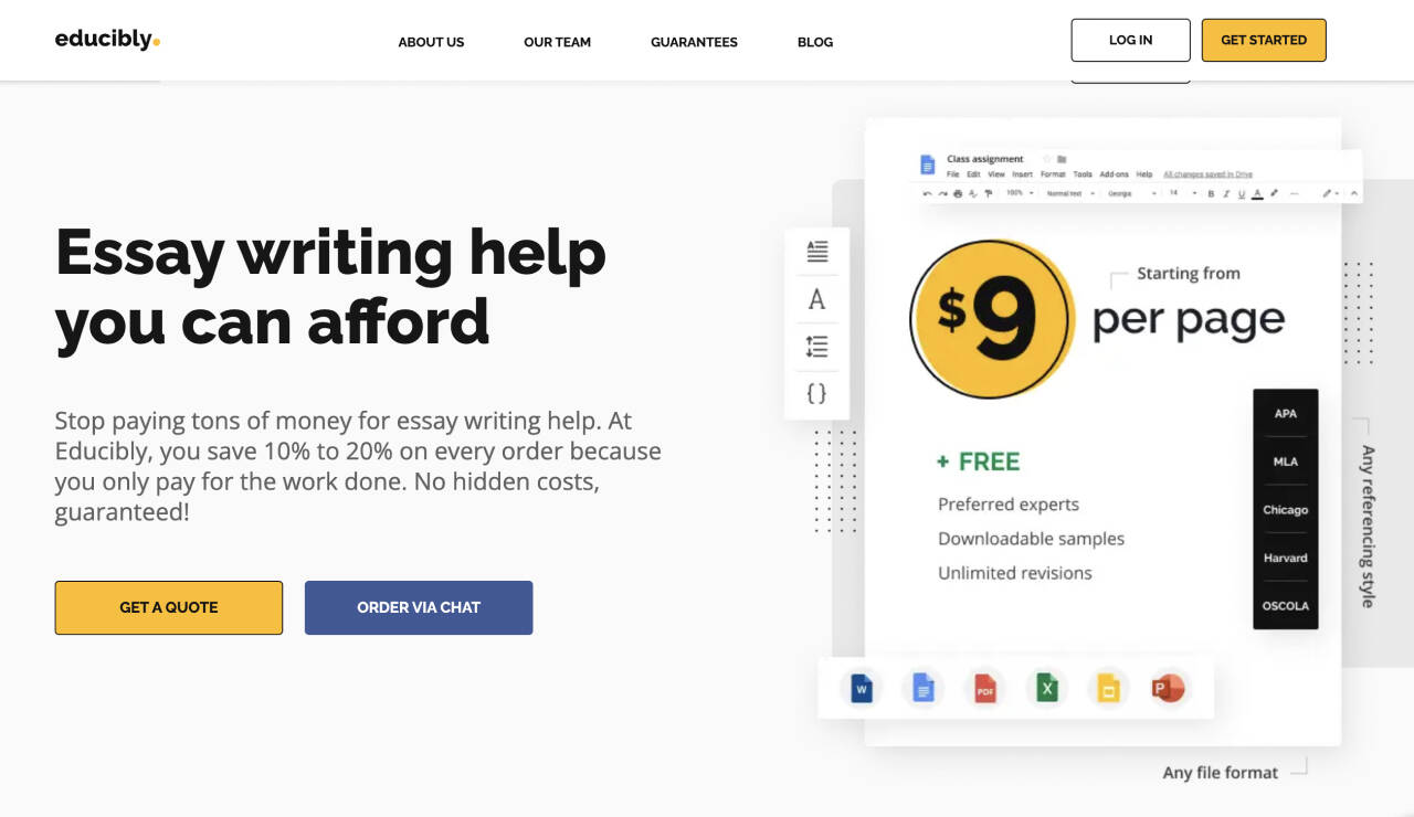 Improving your GPA without extra hassle is easy with the Educibly team. Polished, well-researched assignments will always be in your mailbox ahead of the deadline. Choose Educibly as your essay provider to remove all stress and hardship from the study process.