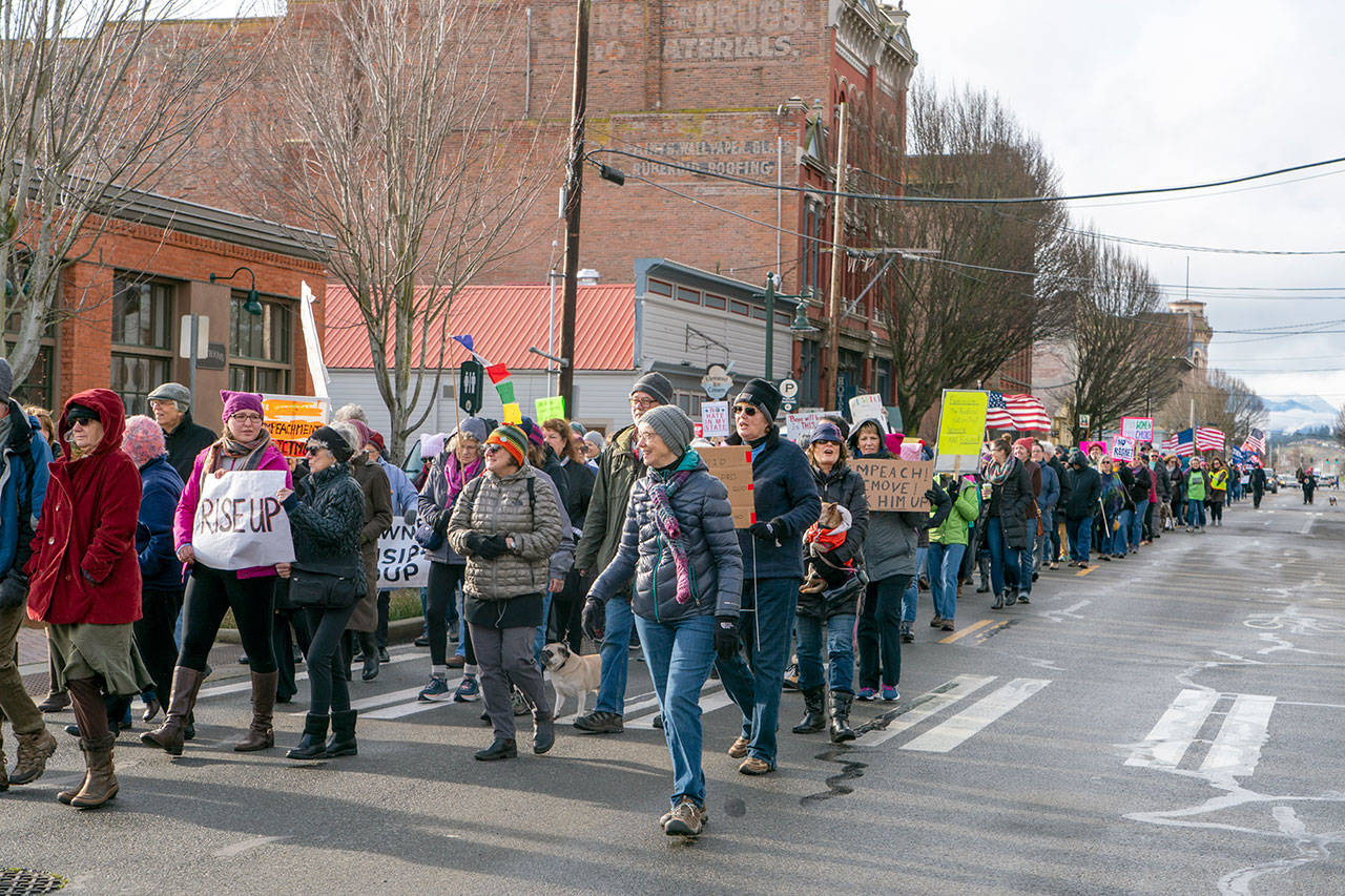 An estimated 300 people showed up to march along Water Street in Port Townsend on Saturday to take part in the annual Womxns Protest against President Trump and his policies.