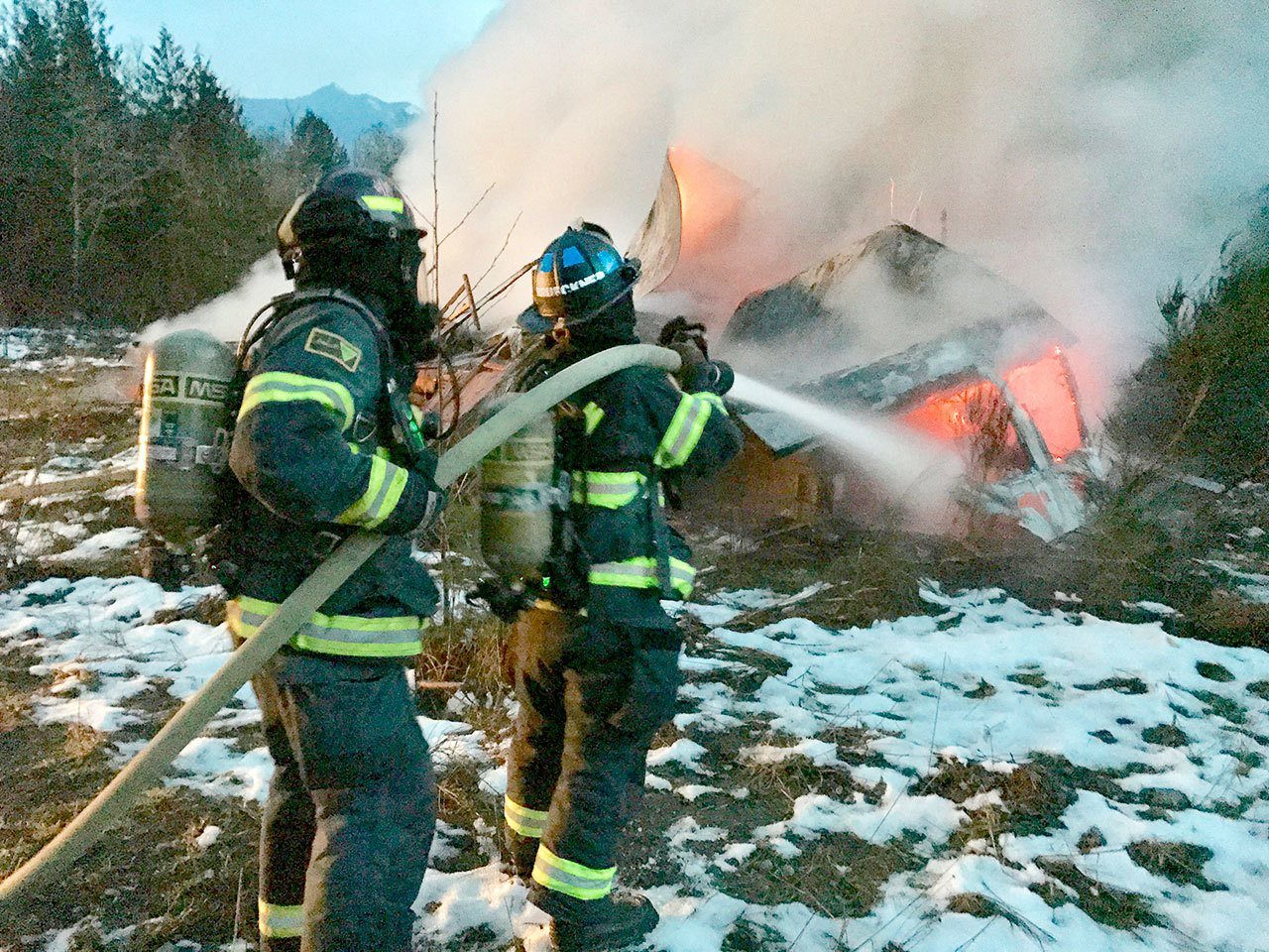Firefighters extinguished the fire as Clallam County Sheriff’s deputies arrived to investigate.