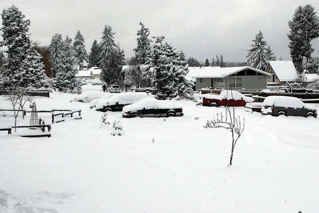 Port Angeles and Sequim bore the brunt of the lowland snow accumulation as moisture mixed with the arctic air blasting the Peninsula from the Fraser Outflow in British Columbia, especially in higher elevations.