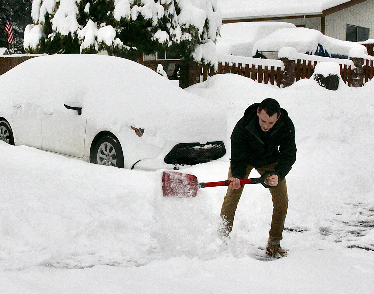 The National Weather Service said areas close to the Olympics in the central part of the Peninsula reported 16 inches of snow by early afternoon Sunday.