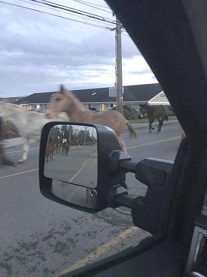 Sequim Police Department reports 28 mules were found loose trotting in and around Sequim on Dec. 15.