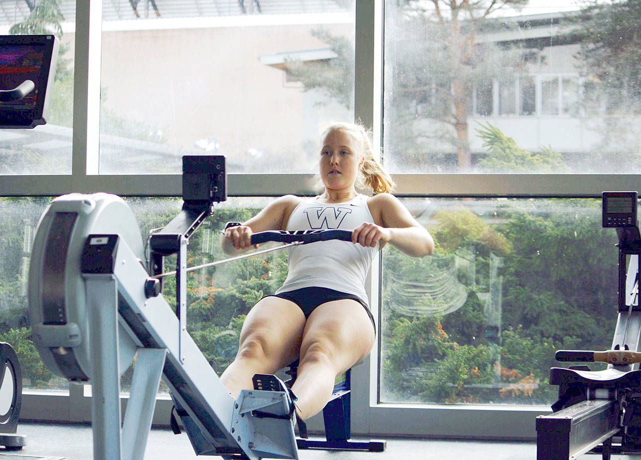 She was a member of the UW’s NCAA national championship rowing team last year. Dawson is used to a racing shell that’s light, fast and powered by eight women.