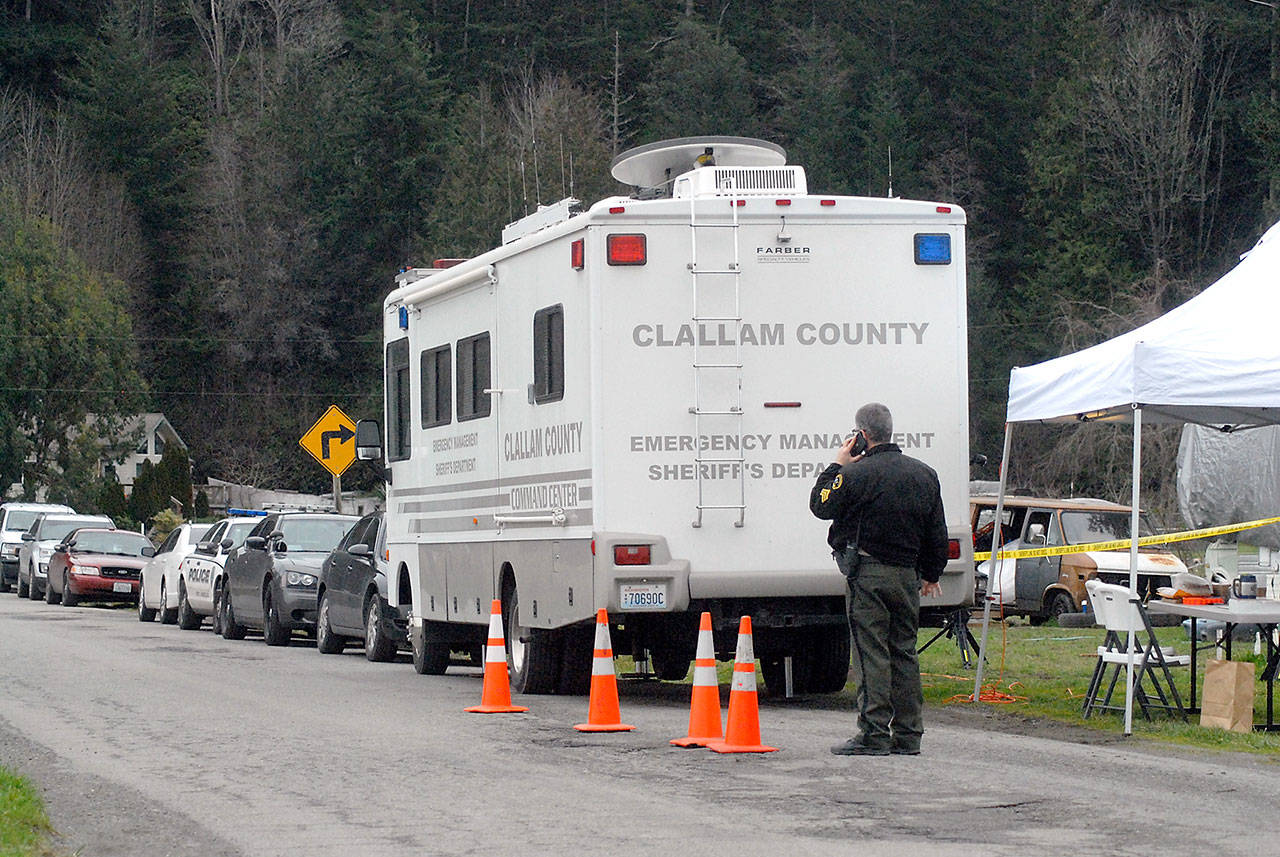 He said detectives from the Clallam County Sheriff’s Office, Port Angeles Police Department, Jefferson County Sheriff’s Office, Port Townsend Police Department and State Patrol were searching the property for evidence.