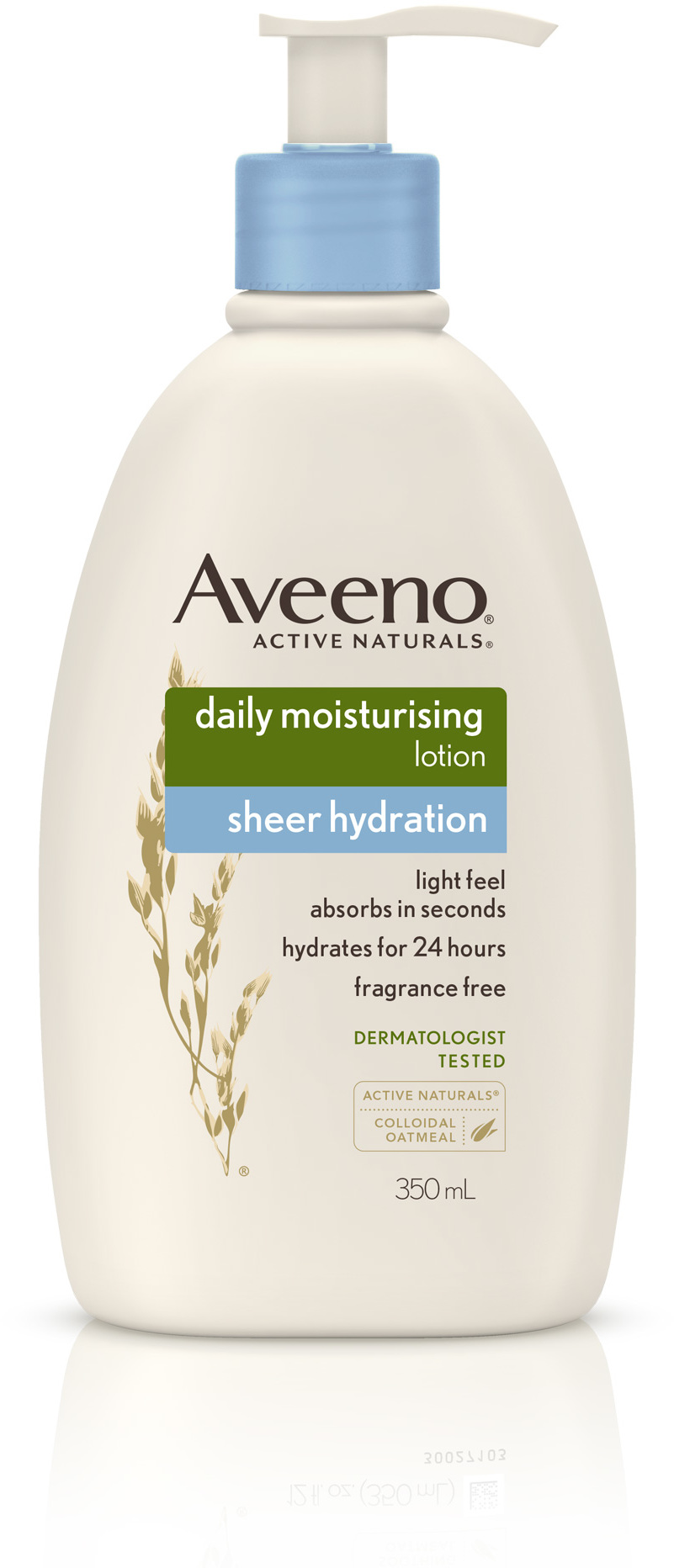 Aveeno Daily Moisturising Sheer Hydration Lotion is a body moisturiser that delivers 24 hour moisturisation. The feather light lotion helps to keep skin hydrated, looking healthy and feeling soft. Formulated with an exclusive ACTIVE NATURALS Oat Formula, the moisturiser combines the same hydrating benefits of Daily Moisturising Lotion, but goes on light and absorbs quickly. It helps replenish the skin’s moisture barrier and prevent water loss, for hydrated and nourished skin. The non-comedogenic, fragrance-free formula is suitable for all skin types.