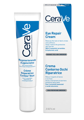 CeraVe Eye Repair Cream is an eye cream that contains a Marine & Botanical Complex to help reduce the appearance of dark circles, eye puffiness and brighten the entire eye area. Suitable for all skin types, this non-greasy, fast-absorbing, fragrance-free eye cream also contains three essential ceramides, hyaluronic acid and niacinamide. Developed with dermatologists the formula also contains patented MVE Delivery Technology that releases a steady stream of moisture for skin nourishment around the clock.