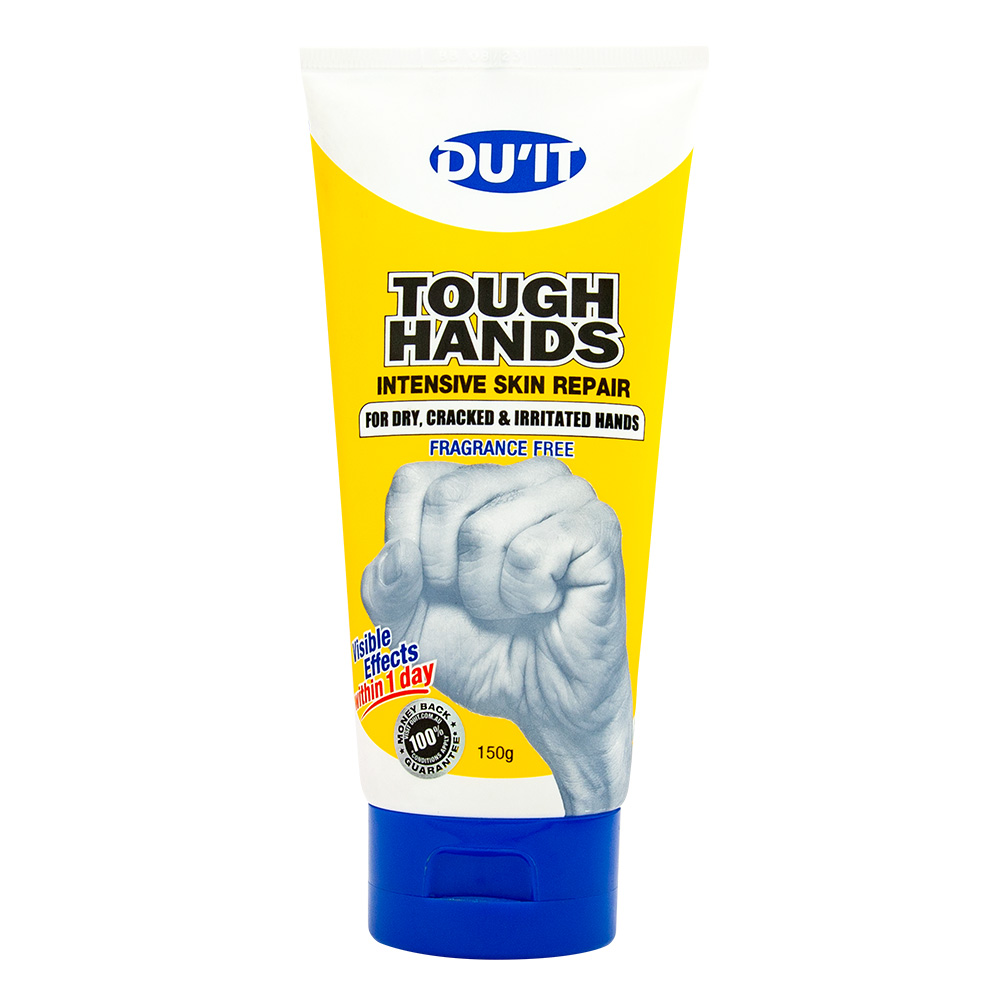 DU’IT Tough Hands Fragrance Free is a fragrance-free hand cream formulated for active hands to keep them in top condition. It provides long-lasting protection from damage to hands caused by repeated washing, prolonged use of latex gloves, chemicals, solvents, glues, cleansers and contact with other allergens and irritants. DU’IT Tough Hands is an advanced, multi-action treatment formula that contains skin smoothing natural lactic acid to exfoliate away dryness and improve skin texture and suppleness. Fragrance-free and suitable for people with sensitive skin. Proven to fix bad hands within five days and also renovates damaged, dry, calloused hands. Scientifically tested. Contains 10 per ceent UREA, a super moisturising agent, and anti-microbial properties. Free from parabens, petrolatum, mineral oil, lanolin and propylene glycol.