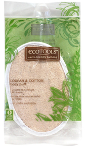 Eco Tools Loofah & Cotton Body Buff exfoliates and sloughs away dry skin for a healthy glow. This two-sided buff works to exfoliate, then cleanse. Made from natural loofah vegetable and 100 per cent cotton.