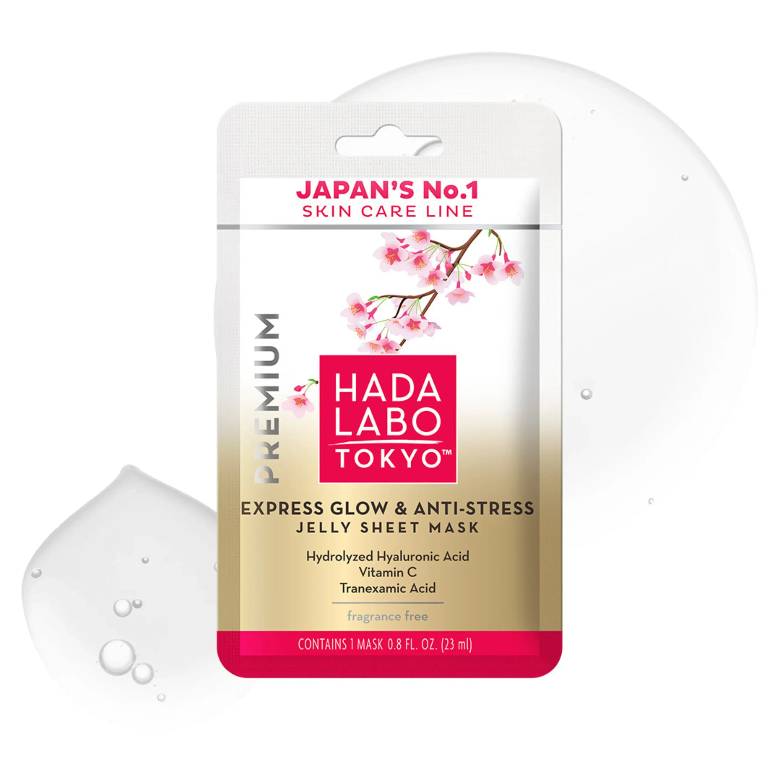 Hada Labo PREMIUM RANGE: Express Glow & Anti-Stress Jelly Sheet Mask is a revitalising, jelly-textured mask that delivers an instant boost of hydration and radiance while helping to reduce signs of stress and fatigue. Infused with Hydrolysed Hyaluronic Acid, Vitamin C (Ascorbyl Tetraisopalmitate), and Tranexamic Acid, it deeply moisturises, brightens the complexion, and evens skin tone. The innovative jelly material ensures a soothing fit, leaving skin refreshed, plump, and glowing. To use, apply the sheet mask to clean skin, leave on for 15 minutes, then remove and gently pat in any excess serum. For optimal results, use 2–3 times per week.