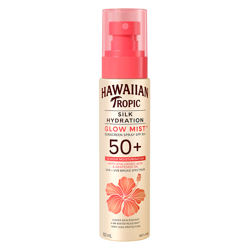 Hawaiian Tropic Silk Hydration Glow Mist™ Sunscreen Spray SPF50+ offers very high UVA+UVB protection with Hyaluronic Acid and Grape Seed Oil. This delicate fine clear mist leaves skin radiant and glowing. The formula is lightweight, invisible and provides 12 hour moisturisation. This convenient spray format is fast absorbing and 4 hr water resistant. It contains mango and papaya extracts and is beautifully scented in our Iconic Hawaiian Tropic scent. It is dermatologically tested, non-comedogenic and ideal for daily use.