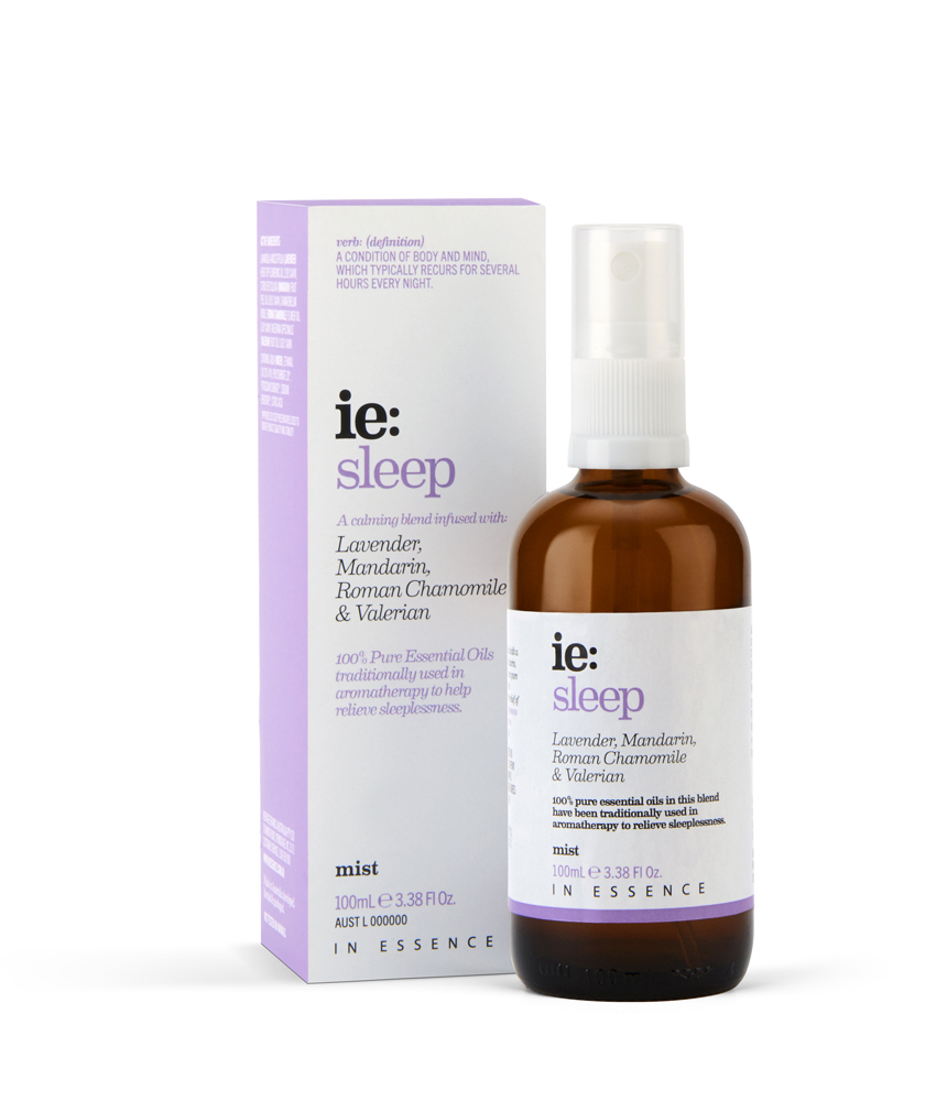 In Essence Sleep Essential Oil Mist is a light room or body mist. It is infused with a calming blend of lavender, mandarin, Roman chamomile, and valerian pure essential oils traditionally used in aromatherapy for the temporary relief of symptoms associated with sleeplessness including mild insomnia, nervous tension, stress, and mild anxiety.