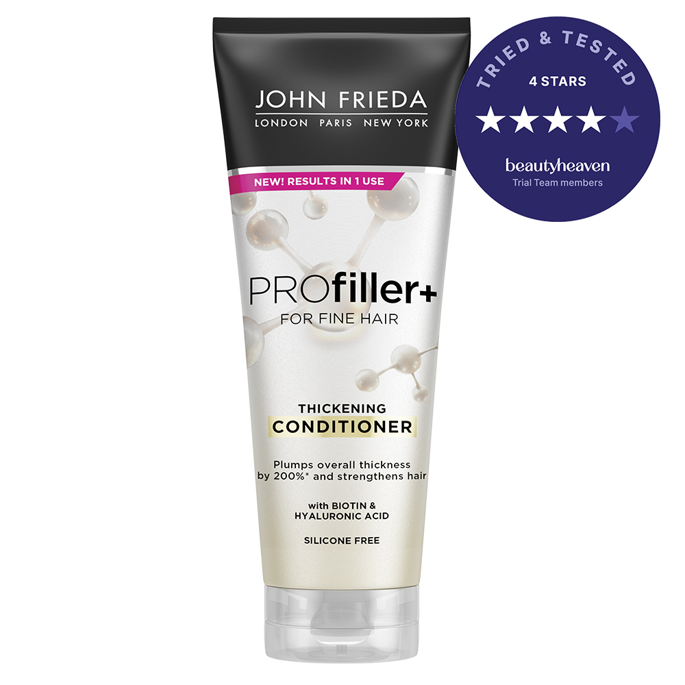 John Frieda PROfiller+ Thickening Shampoo is a thickening shampoo that gives fine, thin hair an instant plumping boost for hair that looks and feels thicker, fuller and stronger in just one use. This shampoo is infused with Biotin, known to provide hair with strength, and, Hyaluronic Acid, known to hydrate hair. It helps reduce hair loss due to breakage. Paraben and Silicone-free formula is also cruelty-free and vegan friendly.