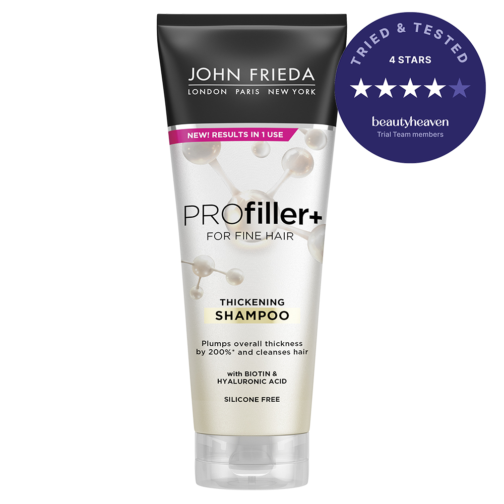 John Frieda PROfiller+ Thickening Shampoo is a thickening shampoo that gives fine, thin hair an instant plumping boost for hair that looks and feels thicker, fuller and stronger in just one use. This shampoo is infused with Biotin, known to provide hair with strength, and, Hyaluronic Acid, known to hydrate hair. It helps reduce hair loss due to breakage. Paraben and Silicone-free formula is also cruelty-free and vegan friendly.