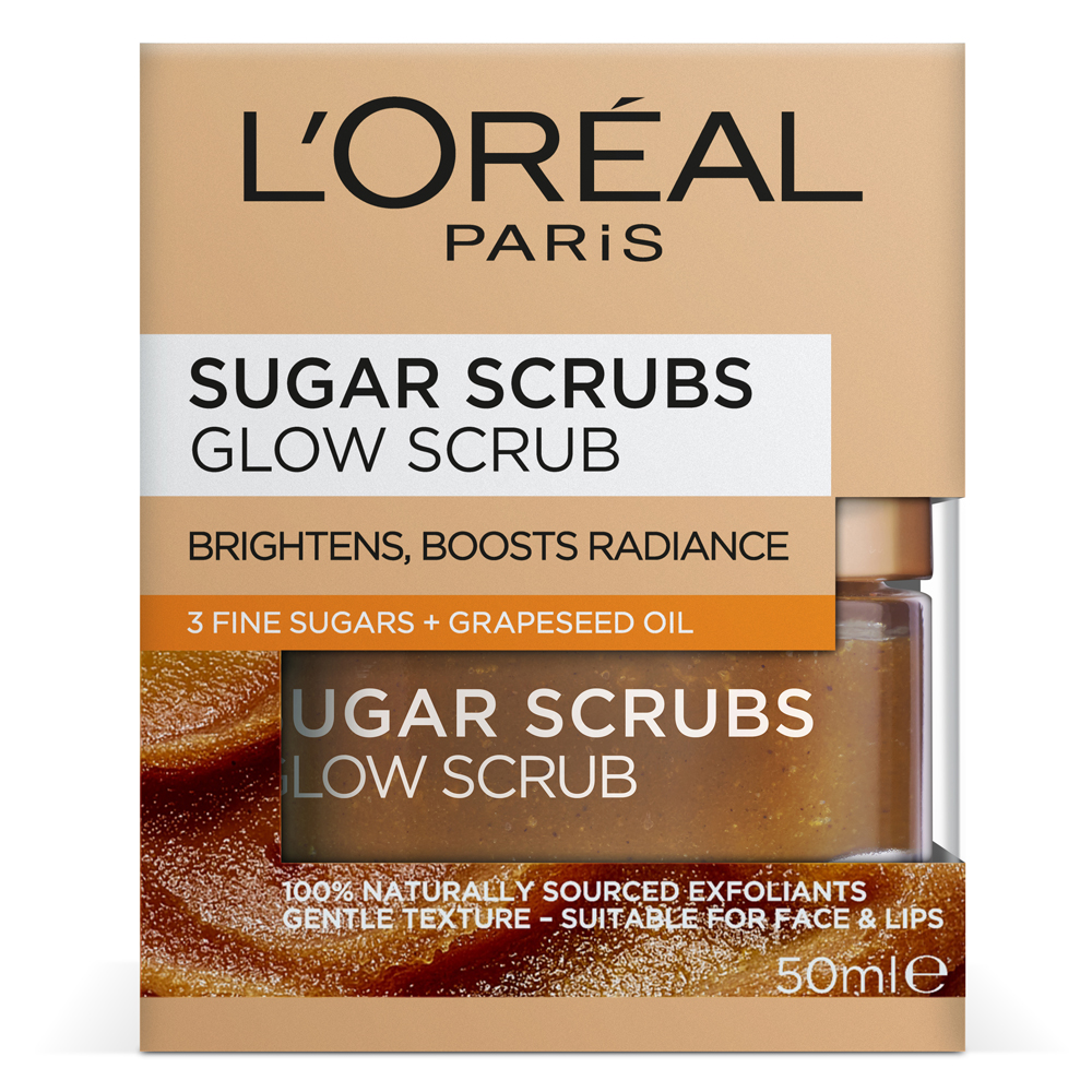 L’Oréal Paris Sugar Scrubs Glow Scrub with Grapeseed Oil is a face scrub that brightens skin and boosts radiance. It is formulated with grapeseed oil and enriched with vitamin E to illuminate dull, tired skin. The radiance boosting formula exfoliates and cares for the skin, with monoi oil to moisturise and protect skin from dullness, as well as acai powder to refine skin’s texture for a visibly smoother finish.