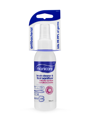 Manicare Brush Cleaner & Tool Sanitiser is antibacterial and kills 99% of Germs. Keep your beauty kit hygienic and germ free. Use the easy spray application to instantly sanitise tools and effctively remove oil based make -up from your brushes.